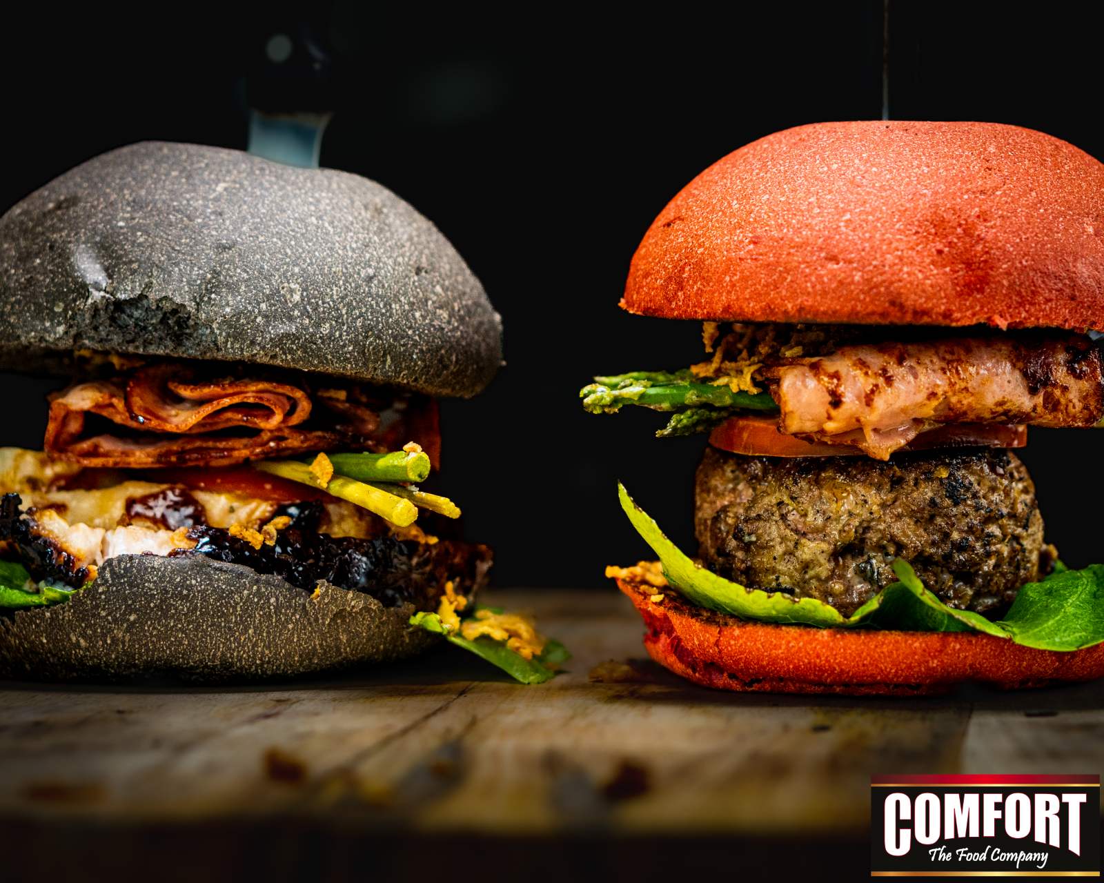Παίρνουμε τα burger buns (BLACK MAMBA και παντζάρι) προσθέτουμε BBQ whiskey sauce