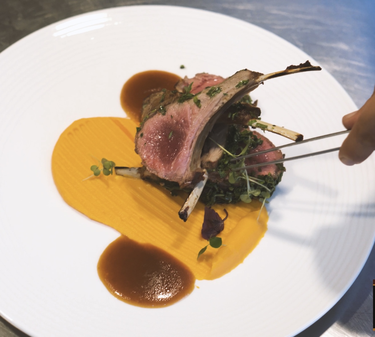 Παϊδακια γαλλικής κοπής με γλυκοπατάτα και σάλτσα Demi glacé Apollo Professional.