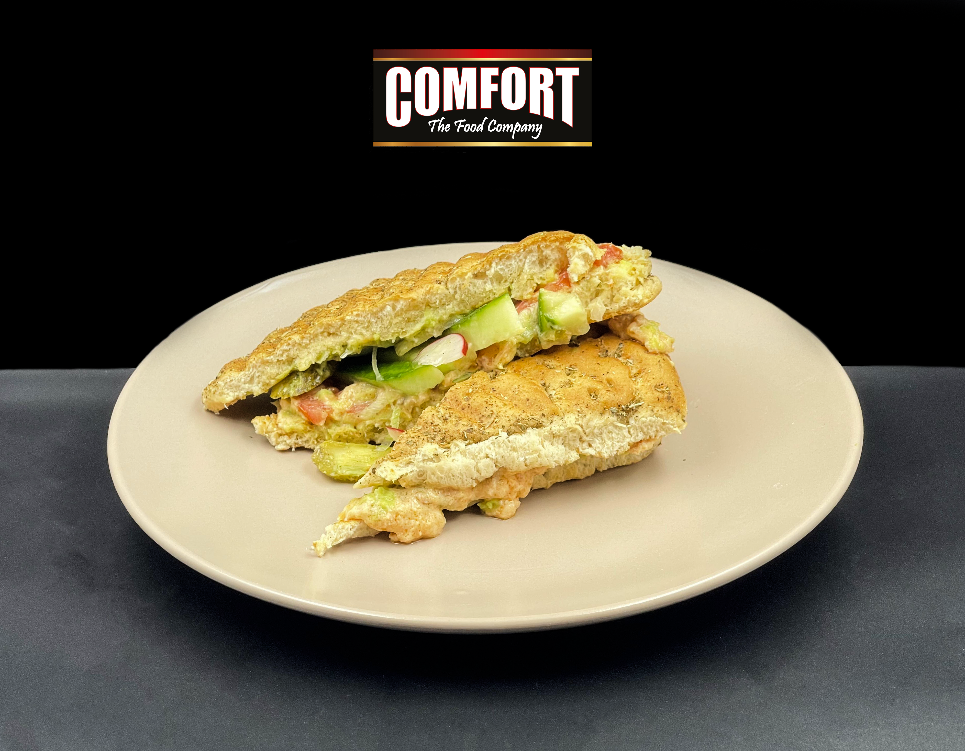 Παίρνουμε το ψωμί FOCACCIA το κόβουμε στη μέση, αλείφουμε με βούτυρο και το φρυγανίζουμε στην τοστιέρα. Μόλις είναι έτοιμο το αφαιρούμε και αλείφουμε και στα δύο κομμάτια την κρέμα αβοκάντο FRUDEL. Προσθέτουμε την κρέμα σολομού ANTICO CASALE, τη ντομάτα, το αγγούρι, την πίκλα από το ραπανάκι, το αγγουράκι τουρσί FARMER, το φρέσκο κρεμμυδάκι. Τέλος προσθέτουμε αλάτι MALDON και ελαιόλαδο.